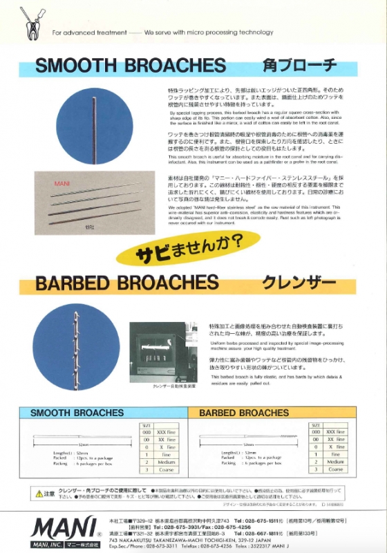 Ace extractoare de nerv, din otel pentru indepartarea tesutului pulpar-SHORT BARBED BROACHES. Realizat din otel inoxidabil (inclusiv nichel È™i crom), cu maner. Este un instrument nesteril. Produs sterilizabil in autoclav. Produsul este realizat in mai multe marimi. Prezentare in cutie cu 6 bucati.